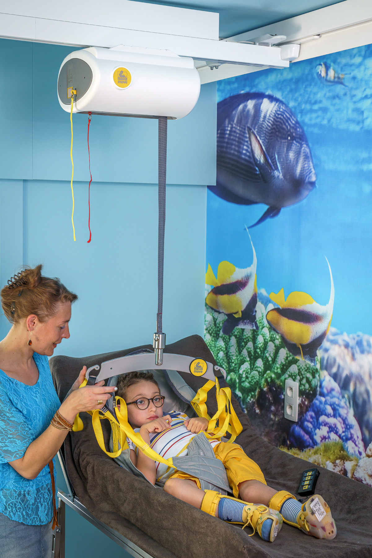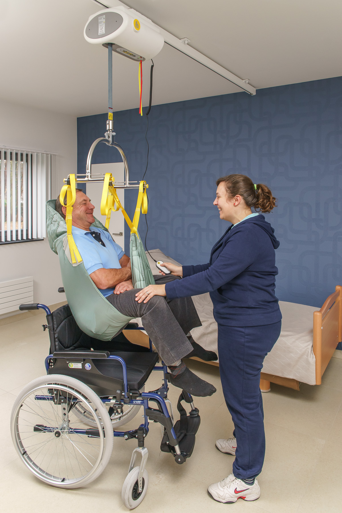 Wat deze plafondmotor extra bijzonder maakt, is dat een begeleider dicht bij de gebruiker kan blijven tijdens de transfer. Dit maakt persoonlijk contact en warme zorg mogelijk – ideaal bij de verzorging van kinderen, of in situaties waarin nabijheid en ondersteuning belangrijk zijn.