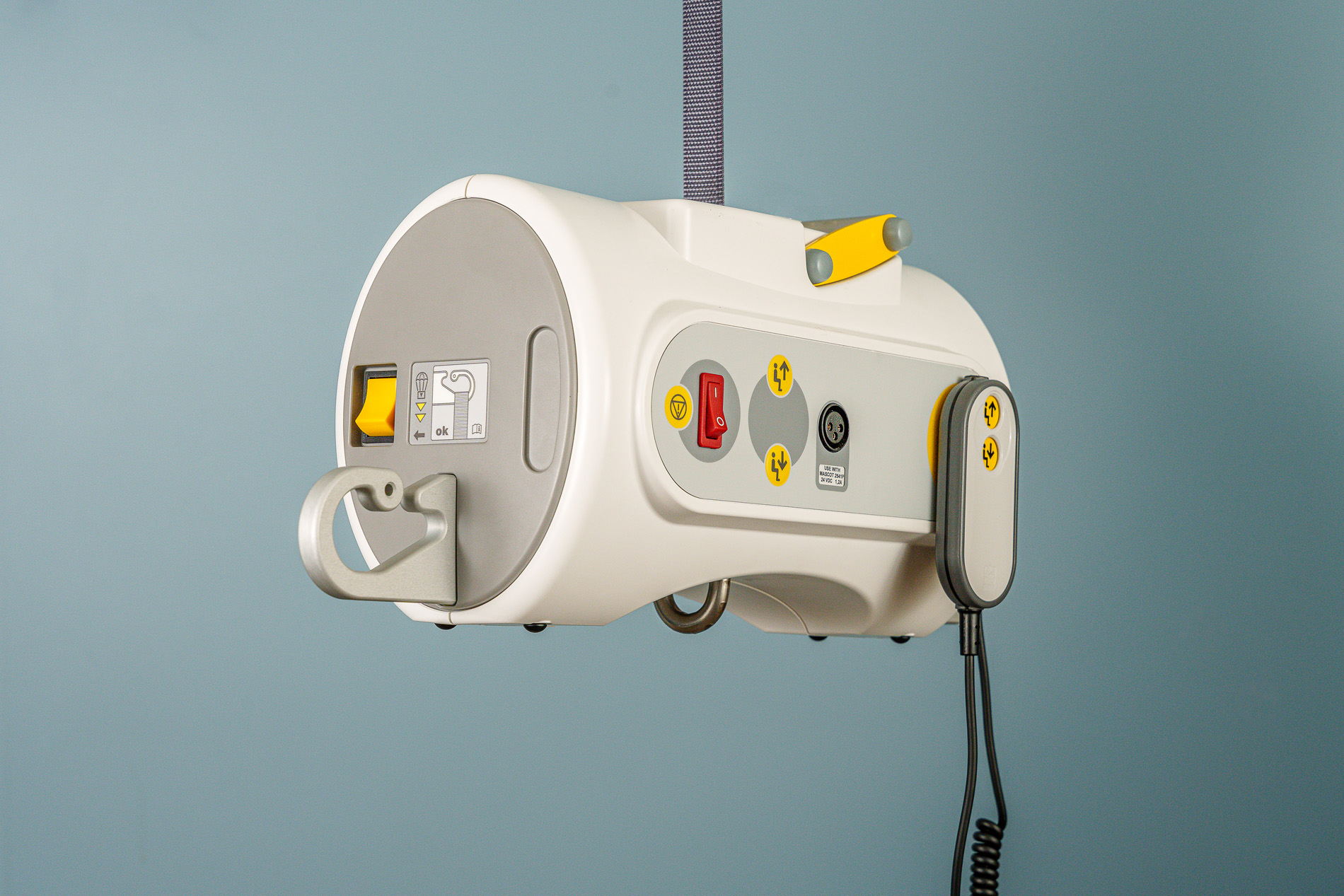 De motor is geschikt voor gebruik met zowel de Surehands® tilbeugel als met diverse tilbanden, en kan bediend worden door de gebruiker zelf of door een begeleider. Dit maakt hem perfect voor kleinere ruimtes, waar je geen vaste installatie wilt of kunt aanbrengen.
