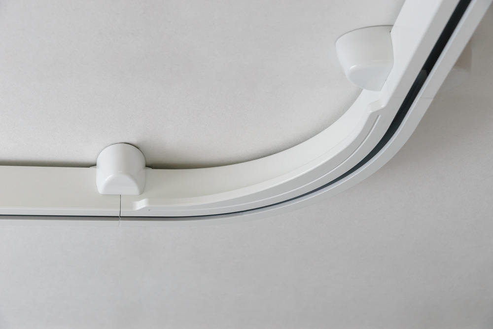 De rails zijn vervaardigd uit wit gelakt aluminium – een sterk, corrosiebestendig en fraai materiaal dat zich subtiel integreert in elk interieur. De geluidsarme kunststof wieltjes zorgen bovendien voor een fluisterstille werking – ideaal voor woonomgevingen waar rust belangrijk is.