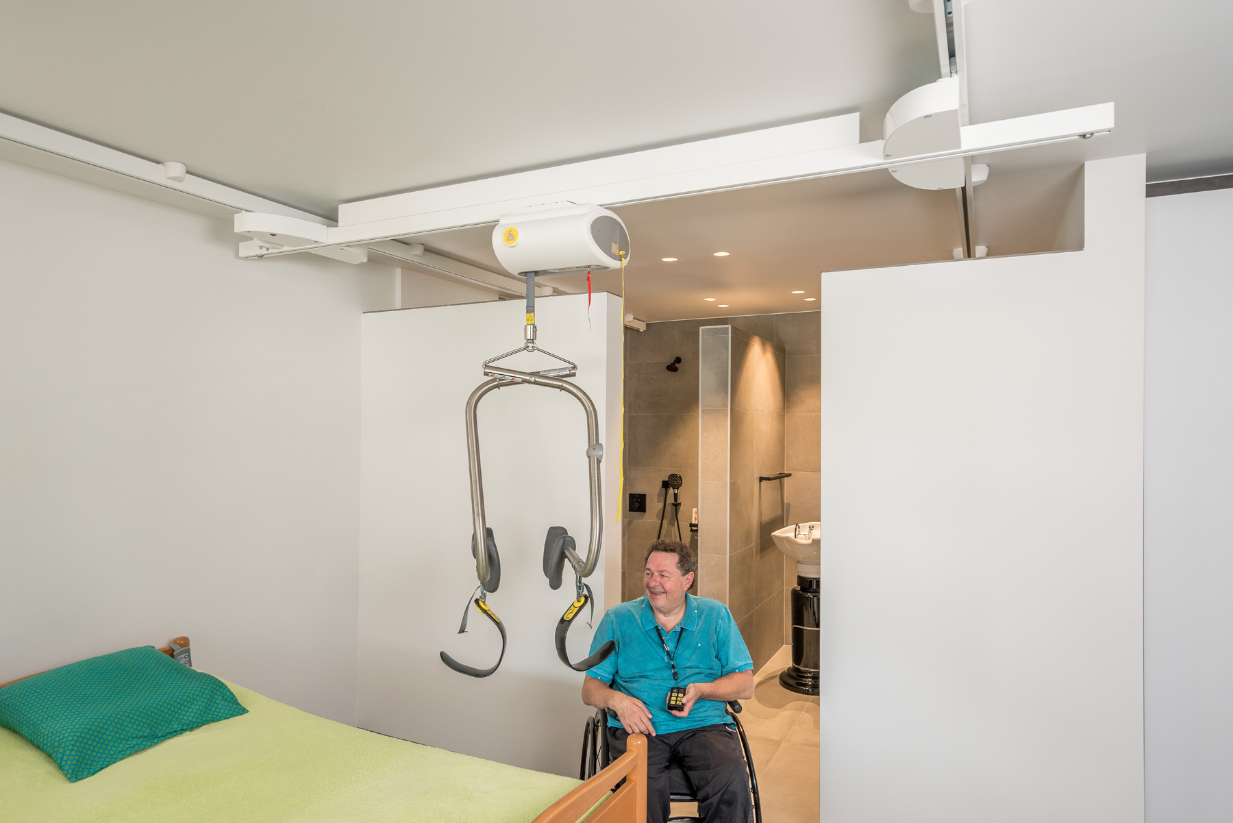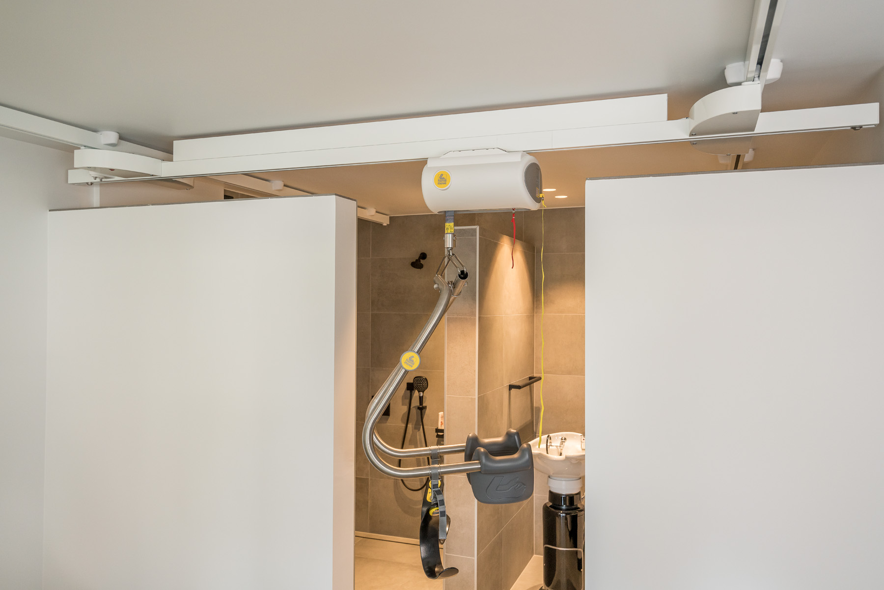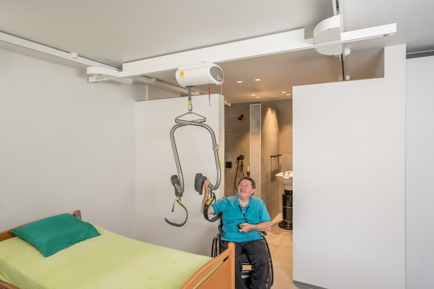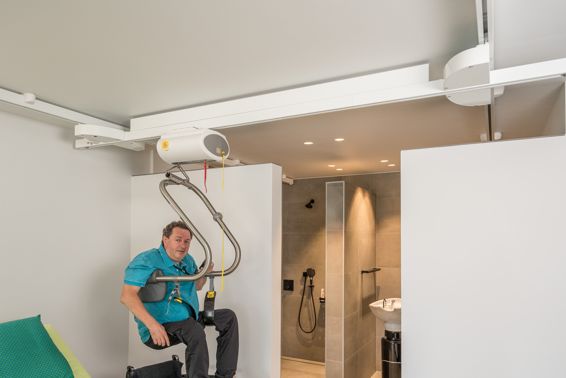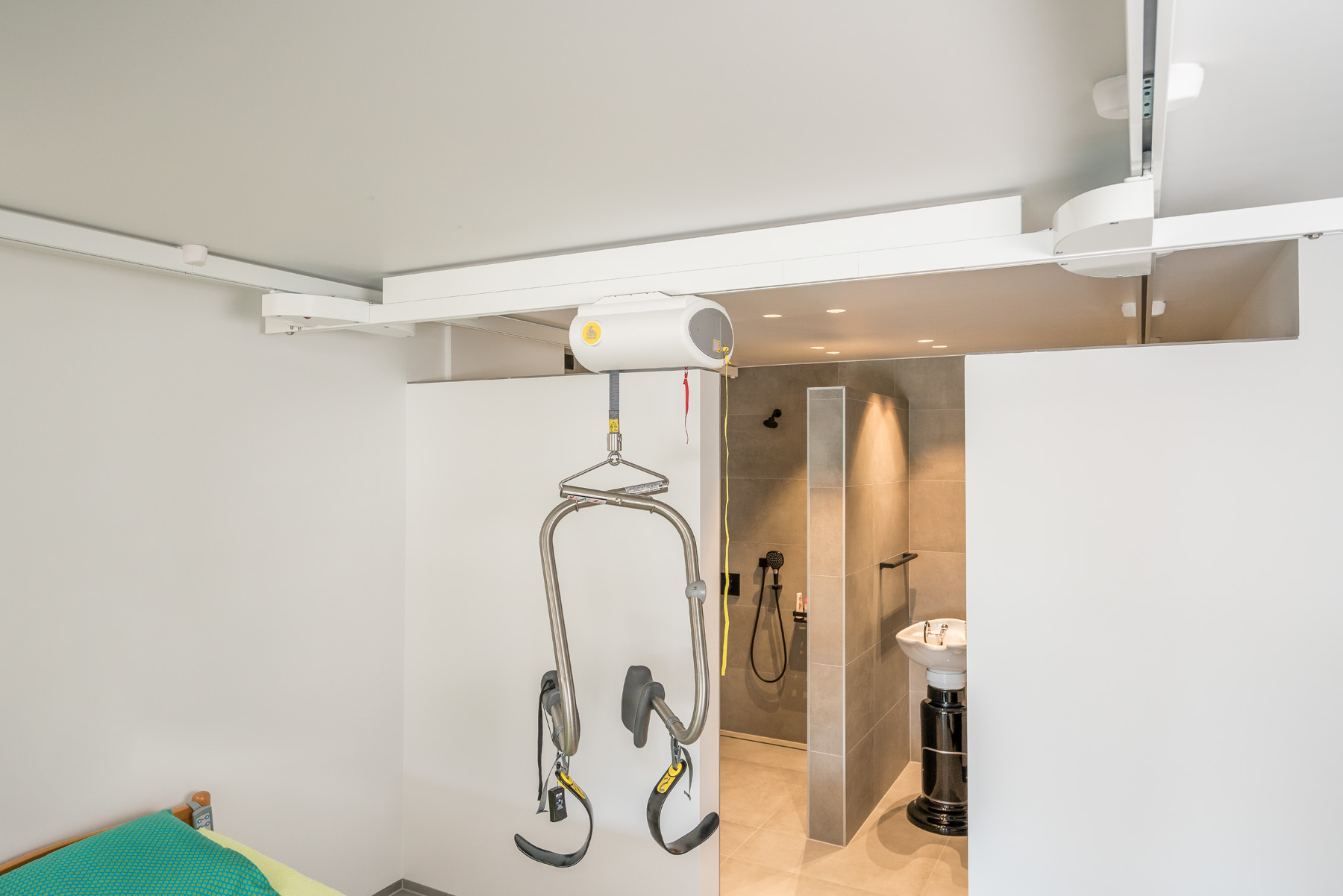 ✔️ Geen verplaatsing van plafondlift nodig – alles in één vloeiende beweging