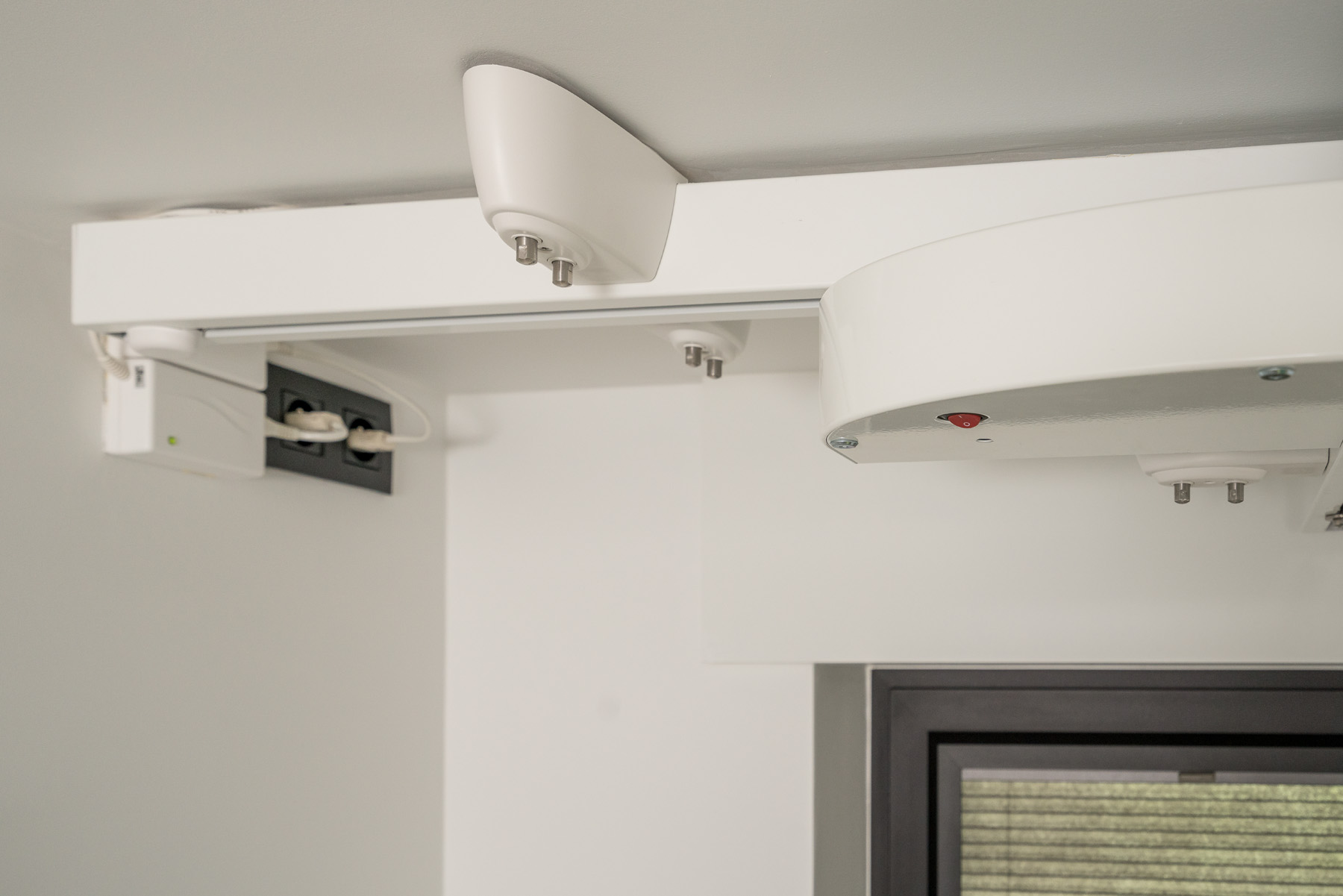 Optioneel: met de traverse connector kan de beweegbare rail gekoppeld worden aan een vaste rail in een andere ruimte, bijvoorbeeld van slaapkamer naar badkamer. Een ingebouwd veiligheidssysteem zorgt ervoor dat de plafondlift alleen verdergaat wanneer beide rails correct zijn gekoppeld – veilig en betrouwbaar.